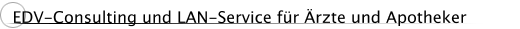 Wir freuen uns, dass Sie unsere neue Internet-Präsenz besuchen. Als modernes Unternehmen wollen wir Sie gerne auch online mit allen Informationen rund um unsere Angebote versorgen. Ein neuartiges System wird es uns ermöglichen, Sie an dieser Stelle stets besonders aktuell auf dem Laufenden zu halten. Zur Zeit befindet sich unsere Website noch im Aufbau. Wir werden uns bemühen, Ihnen so schnell wie möglich das gesamte Spektrum zu präsentieren. Schauen Sie doch einfach demnächst noch einmal vorbei! Wenn Sie unser Unternehmen noch gar nicht kennen, und erst im Internet von uns erfahren haben: Wir würden uns freuen, von Ihnen zu hören! Bitte lassen Sie uns Ihre Wünsche und Fragen wissen, gerne beraten wir Sie ausführlich.In aller Kürze sollten Sie folgendes über uns wissen: Unser Unternehmen steht für herausragendes EDV-Consult und LAN-Service. Unsere besondere Kompetenz liegt im Bereich der Praxis-EDV für Ärzte. In der Zwischenzeit erreichen Sie uns wie immer telefonisch unter 089 85662012 und per Telefax unter 089 85662013. Natürlich freuen wir uns auch über eine E-Mail von Ihnen, die Sie an diese Adresse senden können: info@medinet-services.de | ![]() | ![]() | |||||||||||||